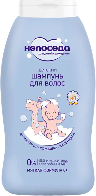 Мягкий шампунь с календулой и ромашкой Непоседа создан специально для ухода за первыми локонами и нежной кожей головы новорожденных.
