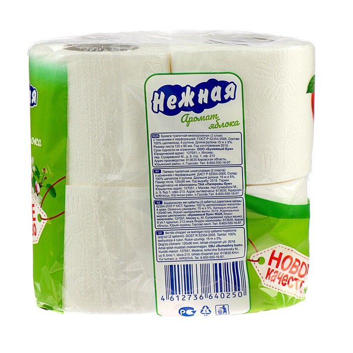 Туалетная бумага «Нежная арома яблоко», 2 слоя, 4 рулона