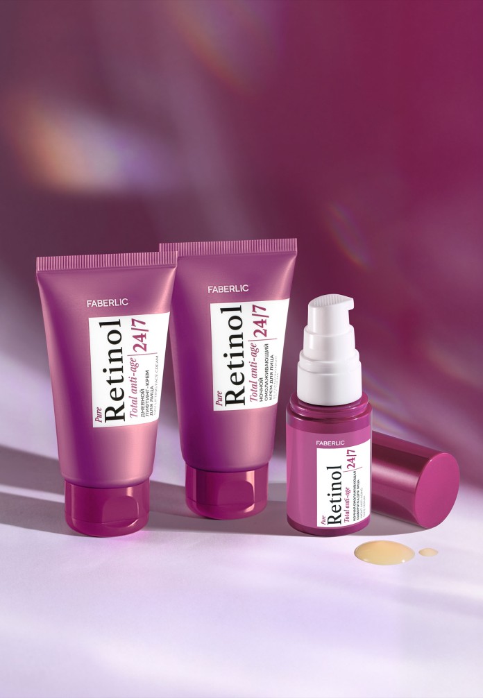 Серия Retinol 24/7 — это инновационные формулы на основе чистого ретинола. Активные средства работают непрерывно, преображая кожу и днем, и ночью. Твоя кожа — эталон молодости!