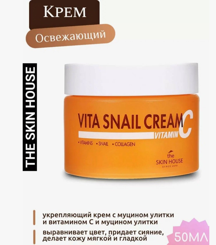 Освежающий крем с витаминами и муцином улитки, 50мл, The Skin House