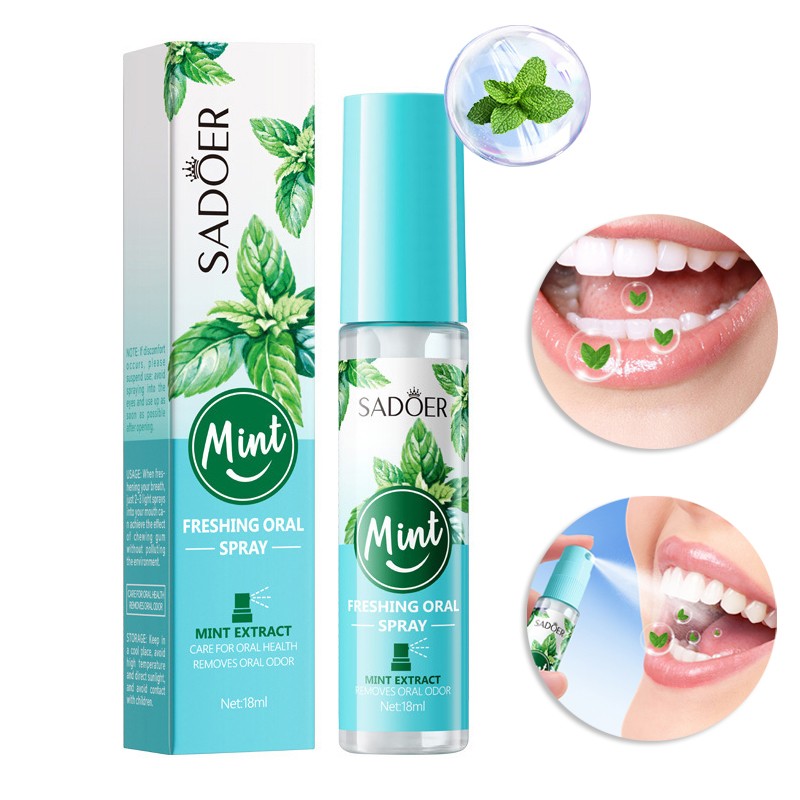 Освежающий мятный спрей для полости рта Sadoer устраняет неприятных запах изо рта после приема пищи, алкоголя и курения и создает в полости рта приятный мятный вкус.