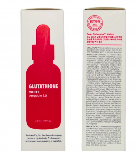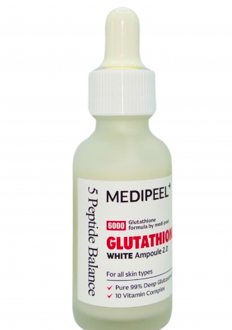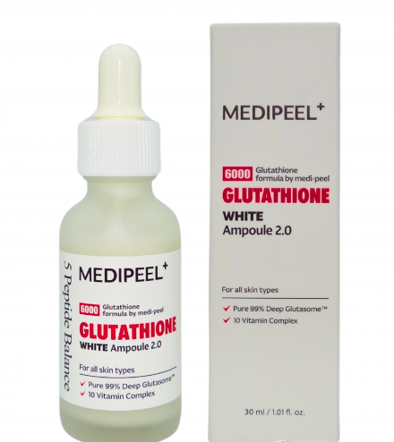 Отбеливающая ампульная сыворотка с глутатионом для лица Medi-Peel Glutathione White Ampoule, благодаря высокой концентрации основных ингредиентов — глутатиона и ниацинамида — обладает выраженным осветляющим действием. Сыворотка выравнивает тон кожи, борется с пигментацией и следами пост-акне, устраняет покраснение и шелушение кожи, контролирует выработку меланина, предупреждая появление нежелательной пигментации. Кроме того, насыщенный пептидами, гиалуроновой кислотой, растительными экстрактами, витаминами, состав сыворотки обеспечивает ее интенсивное питающее, увлажняющее, антиоксидантное, тонизирующее, антивозрастное влияние. При регулярном использовании сыворотки, кожа приобретает и надолго сохраняет свежесть, яркость, однородность цвета, повышаются ее упругость и эластичность, активизируются внутриклеточные процессы восстановления, усиливается местный иммунитет, подтягиваются поры, нормализуется салоотделение.