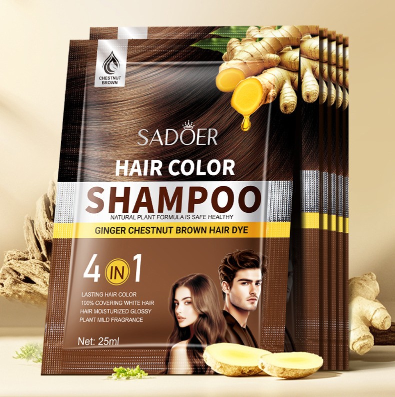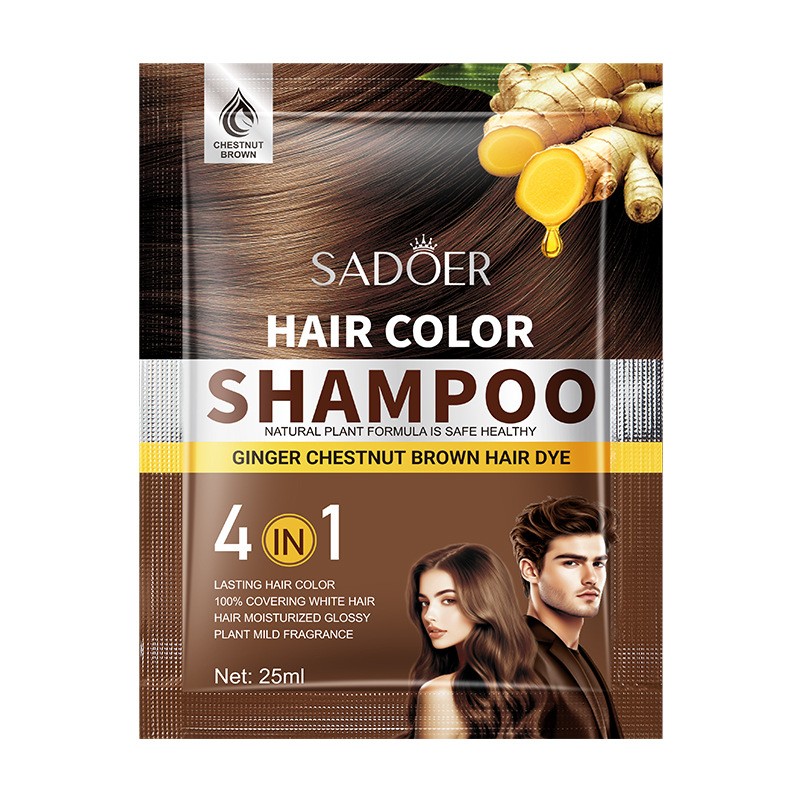 Оттеночный шампунь для восстановления цвета с экстрактом Имбиря Sadoer, 25 мл. Цвет: КАШТАН