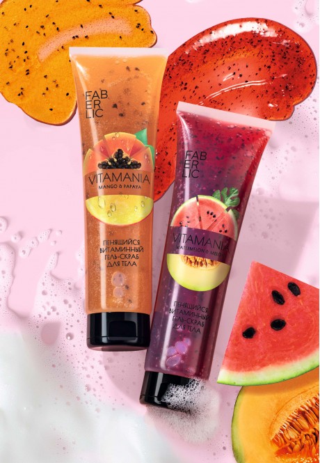 Пенящийся витаминный гель-скраб для тела «Арбуз и дыня» помогает настроиться на волну яркости и беззаботного лета!