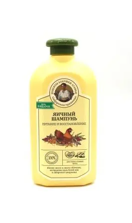Состав: Aqua with infusions of Salix Alba Bark Extract (экстракт коры белой ивы), Amaranthus Caudatus Extract (экстракт сибирского амаранта); Sodium Laureth Sulfate, Cocamidopropyl Betaine, Coco-Glucoside, Egg Oil (яичное масло), Hippophae Rhamnoides Fruit Oil (масло облепихи), Dried Egg Yolk (яичный желток), Styrene/Acrylates Copolymer, Guar Hydroxypropyltrimonium Chloride, Benzyl Alcohol, Sodium Benzoate, Potassium Sorbate, Sodium Chloride, Citric Acid, Parfum, Linalool, Amyl Cinnamal, CI 19140.