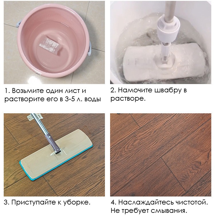 Способ применения: возьмите один лист и растворите его в 3-5 литрах воды. Приступайте к уборке. Не требует смывания. Сухой концентрат мгновенно растворится в воде, независимо от ее температуры. Концентрация раствора зависит от характера загрязнения, позволяя его настроить. Для легких загрязнений достаточно небольшой концентрации раствора. В случае средних загрязнений увеличьте концентрацию, а для сильных загрязнений используйте более насыщенный раствор. ины для уборки являются современной альтернативой моющим средствам. С помощью этих пластин вы сможете легко очистить и дезинфицировать полы и поверхности от загрязнений любой сложности.Не требует смывания, не оставляет разводов, не разрушает защитный слой поверхности. Не содержат хлора . Без сульфатов и фосфатов. Безопасны для детей и животных. Благодаря своему аромату, пластины также придают приятный запах после уборки.Компактное и легкое универсальное средство для уборки экономит пространство для хранения, оно заменит Вам бутылку с бытовой химией 5 литров. Простое в эксплуатации-просто возьмите один лист и положите в ведро с водой. Сухой концентрат растворяется за несколько секунд в воде любой температуры. Полученная жидкость без труда справляется с жиром, пылью, удаляет загрязнения с любых твердых поверхностей.