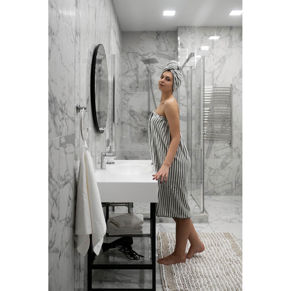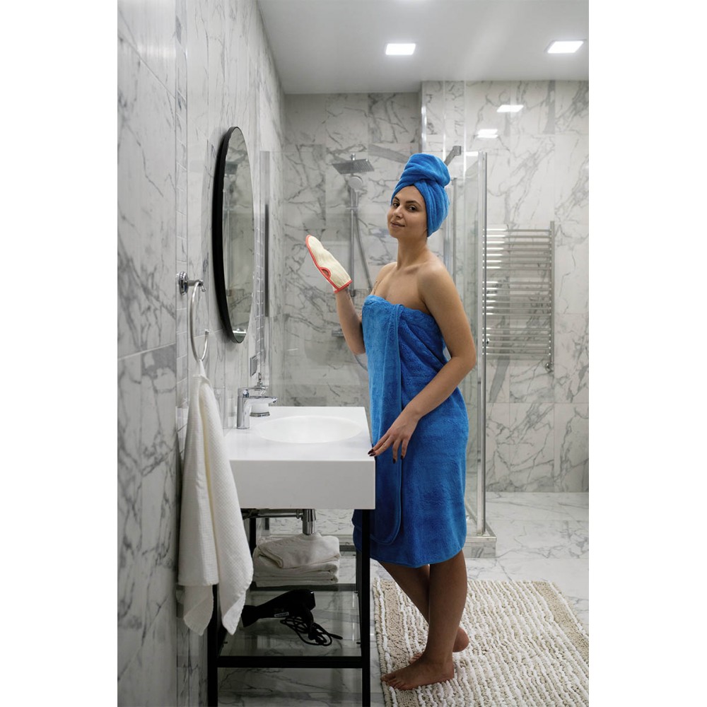 Удобный практичный тюрбан махрового плетения, изготовленный из высококачественного рассеченного микроволокна с антибактериальными свойствами.
