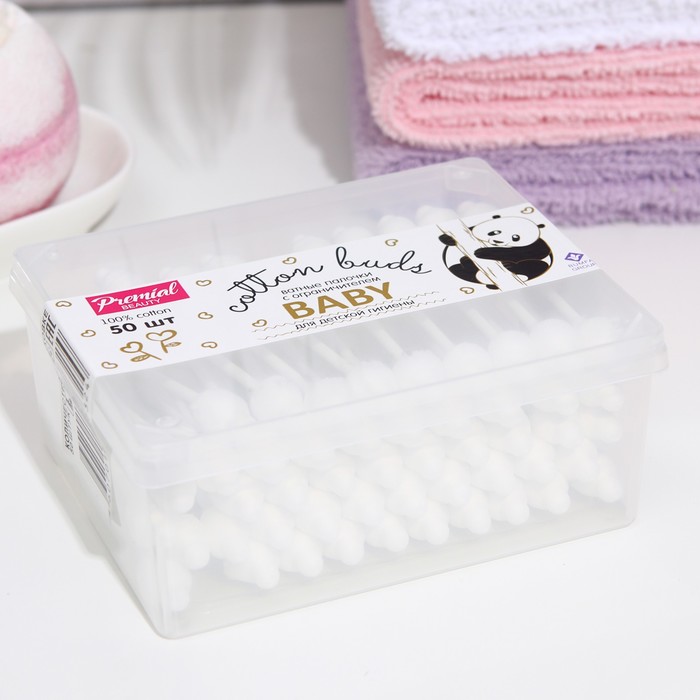 Ватные палочки для детской гигиены Premial, с ограничителем, 50 шт.