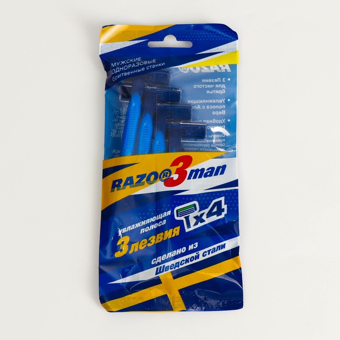 Бритвенные станки одноразовые Razo3man, 3 лезвия, увлажняющая полоса, 4 шт.