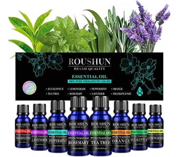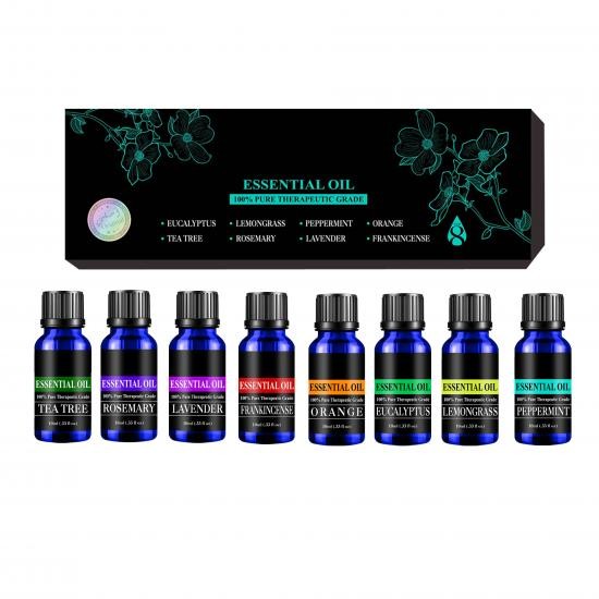 ROUSHUN Масло эфирное ESSENTIAL OIL Набор (Эвкалипт, Мята, Чайное дерево, Лаванда, Лемонграсс, Апельсин, Розмарин, Ладан) (10мл * 8штук) (RS-30249)
