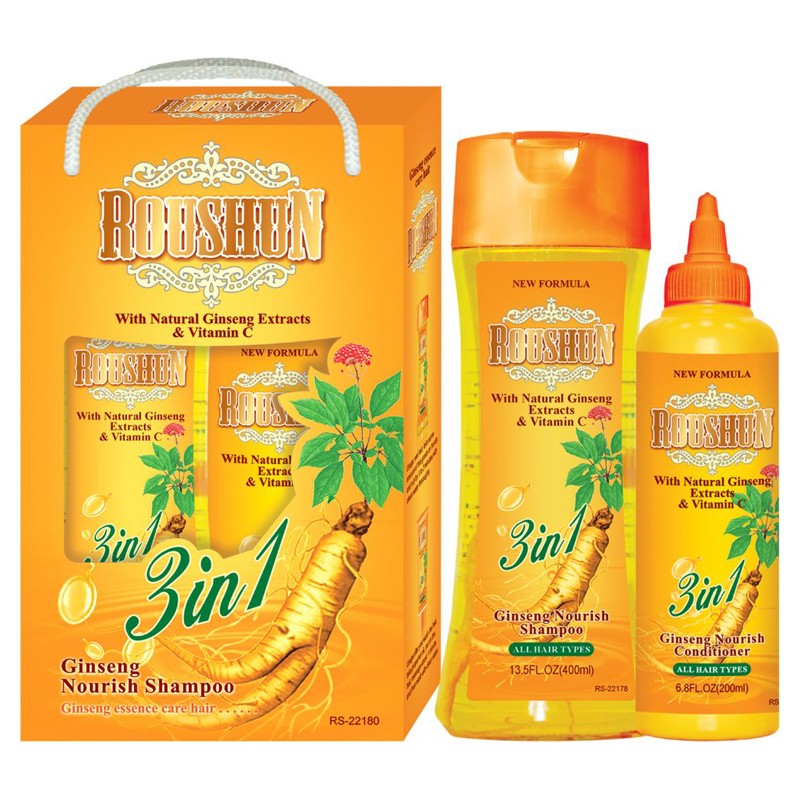ROUSHUN Шампунь + Бальзам GINSENG Nourish 3 в 1 Питательный с экстрактом ЖЕНЬШЕНЯ 400мл + 200мл (RS-30748)