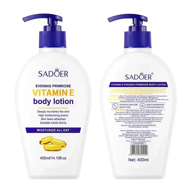 SADOER Лосьон для тела VITAMIN E Питательный ВИТАМИН Е и Масло ПРИМУЛЫ Вечерней 400мл (SD-36780)