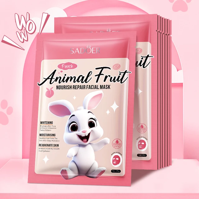 SADOER Маска - муляж для лица Animal Fruit PEACH Питательная Восстанавливающая ПЕРСИК (зайчик) 25г (SD-35103)