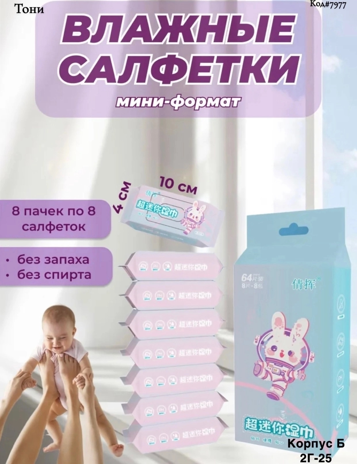 Салфетки влажные мини-упаковка 8 пачек (Код#7977)
