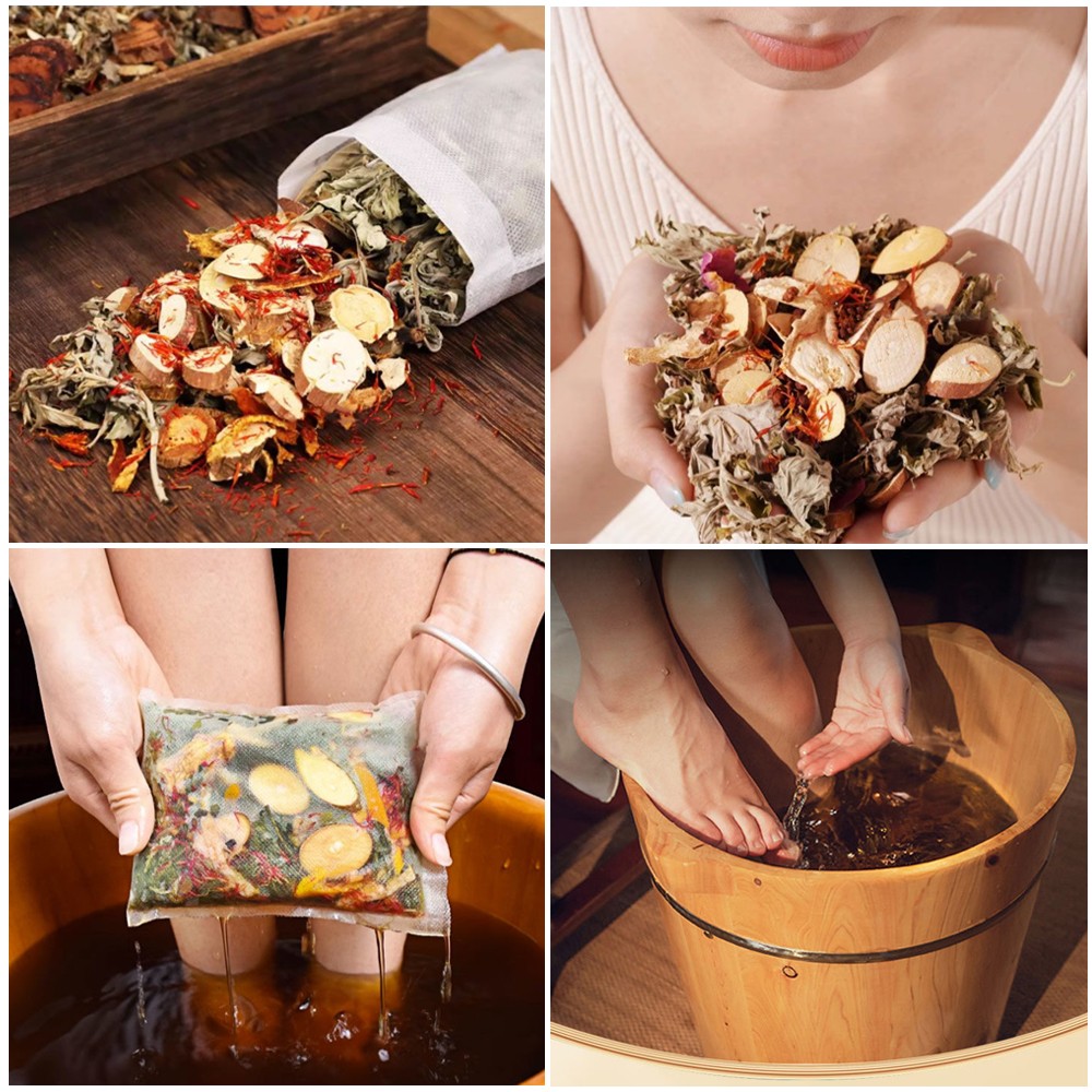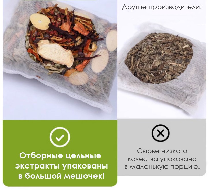 Состав: листья Полыни, Имбирь, Сафлор, Пустырник, ветка Шелковицы, Сычуанский перец, Мандариновая кожура, Анжелика китайская, Гуйчжи, Горец многоцветковый, Морская соль, побеги Спатолобуса, Ахирантес, трава Лу Лу, Чуаньсюн, Альбиция ленкоранская, китайский корень Chinaroot.