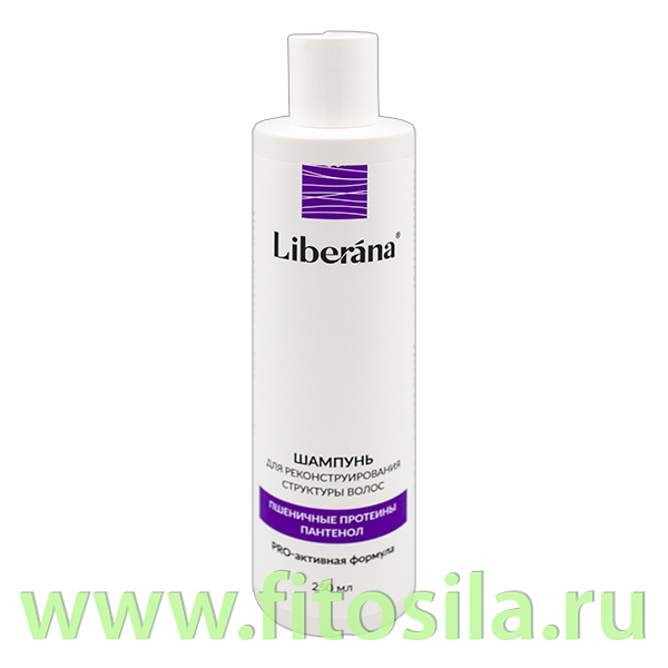 Шампунь для реконструирования структуры волос LIBERANA деликатно очищает, восстанавливает и укрепляет поврежденные волосы, устраняет ломкость, придает эластичность и упругость.