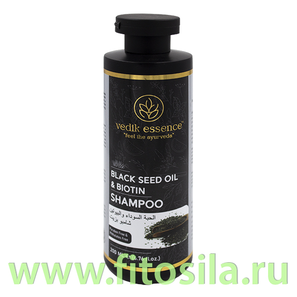 Шампунь VedicEccense с маслом черного тмина и биотином для оживления и придания блеска волосам 200мл.