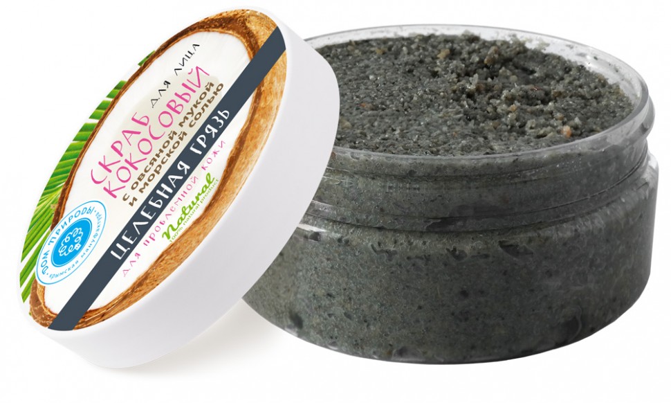 Кокосовый скраб для лица “Целебная грязь” - настоящее спасение для проблемной кожи. Входящие в ее состав грязь Сакского озера и голубая глина глубоко очищают и сужают поры, уменьшают воспаления, помогают нормализовать водно-жировой баланс кожи лица. Масло зародышей пшеницы обладает противовоспалительными свойствами, смягчает кожу, помогает вывести токсины, стимулирует процесс обновления клеток.