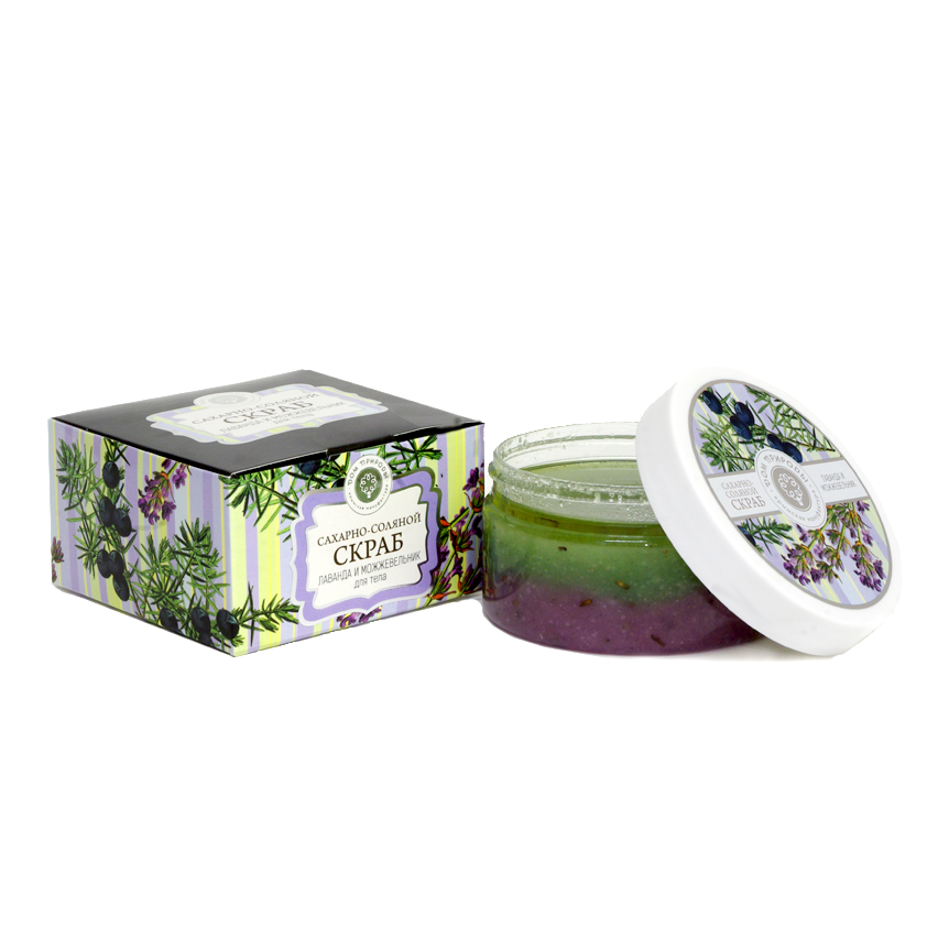 Экстракт лаванды освежает и питает кожу, улучшает микроциркуляцию, снимает раздражение и шелушение. Молотые ягоды можжевельника придают скрабу противовоспалительные и антисептические свойства. Цветочно-древесный аромат эфирной композиции гармонизирует психо-эмоциональное состояние. Кристаллики сахара и соли в сочетании с маслами оливок, кедровых орехов, жожоба бережно очистят кожу от загрязнений и отмерших клеток, сделают ее мягкой, нежной и шелковистой. После скраба не требуется применение дополнительных средств для увлажнения кожи.