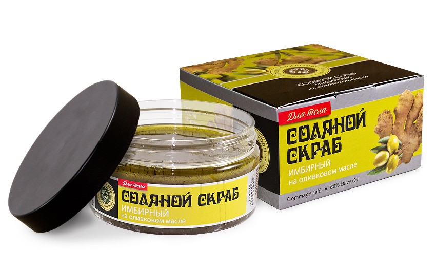 Имбирь великолепно ухаживает за кожей любого типа – снимает воспаления, улучшает кровообращение, тонизирует и возвращает коже упругость. Ценные масла оливок и жожоба смягчают кожу и насыщают ее питательными веществами. Экстракт лимона способствует интенсивному удалению отмерших клеток, а натуральный кофе усиливает антицеллюлитный эффект соляного скраба.