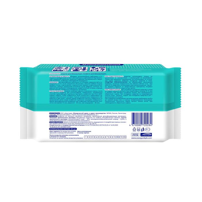 Содержание спирта 30%. Обладают антимикробным действием в отношении возбудителей острых респираторных заболеваний бактериальной и вирусной этиологии, кишечных инфекций бактериальной и вирусной этиологии, грибковых заболеваний (кандидозы). Салфетки изготовлены из нетканого  материала, пропитанные дезинфицирующим  раствором с активными компонентами которыми являются: изопропиловый спирт - 30% и алкилдиметилбензиламмоний хлорид - 0,03%, по назначению рекомендуется применять для дезинфекции любых поверхностей и предметов, однако  также возможно применение данных салфеток  для  кожи рук, т.к. салфетки прошли все этапы регистрации продукции и признаны безвредными для использования людьми и  пригодными к использованию.