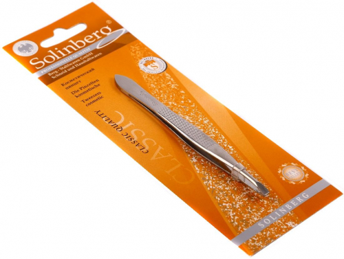 Пинцет для бровей Solinberg G801 серебристый, наклонное окончание.
