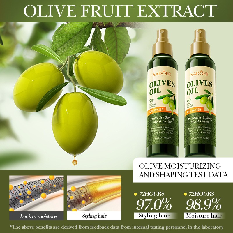 * Масло оливы содержит массу жирных кислот, витаминов и антиоксидантов, оно превосходно питает, увлажняет и восстанавливает волосы по всей длине, делает кончики более тяжелыми и здоровыми, защищая от сечения, устраняет ломкость, тусклость, сухость, «укрощает» локоны, склонные к спутыванию, повышает эластичность и упругость.