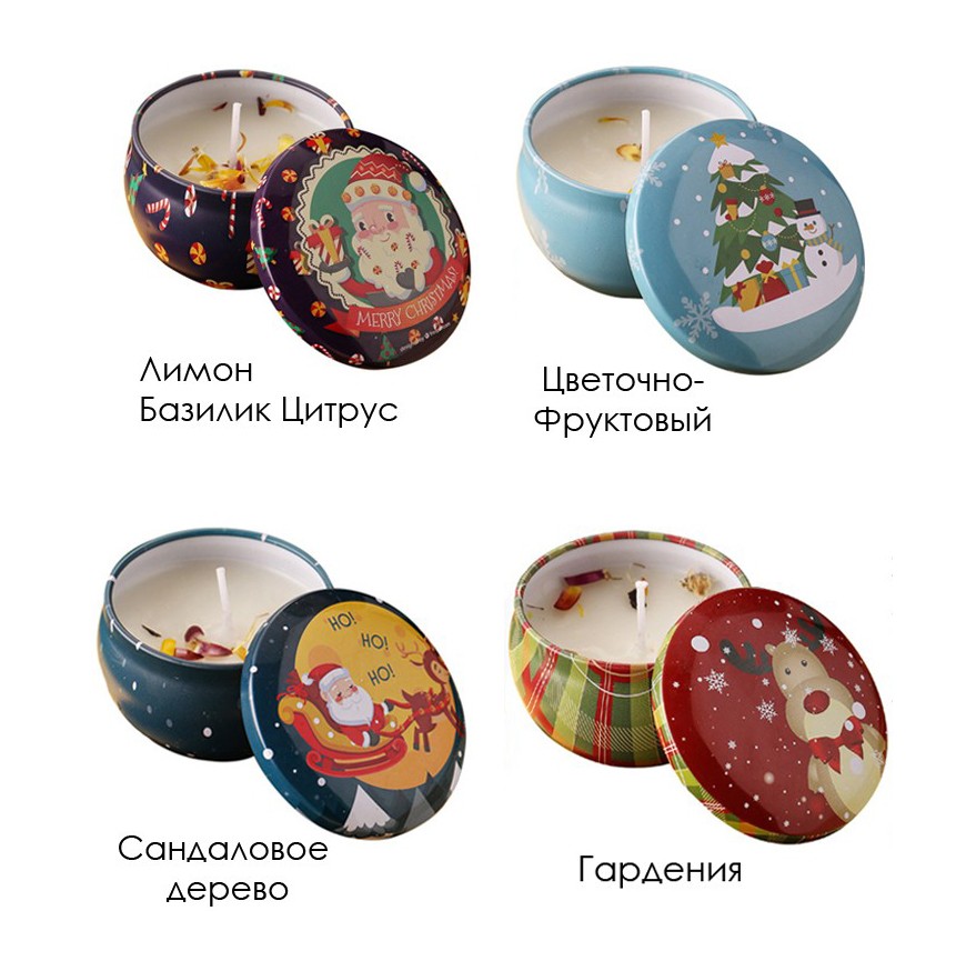 Ароматерапевтические свечи изготовлены из..показать натурального соевого воска с добавлением масел и хлопчатобумажной нити.Портативная жестяная банка для хранения свечей с крышкой изготовлена из красивого толстого металла. После того, как ваша свеча будет полностью использована, эти красивые жестяные банки можно использовать в качестве декоративного контейнера для хранения.