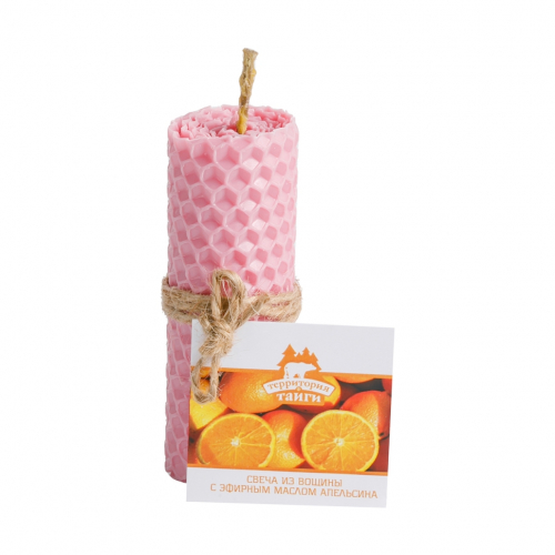 Свеча из вощины с эфирным маслом апельсина, 13,5 см (розовый цвет)