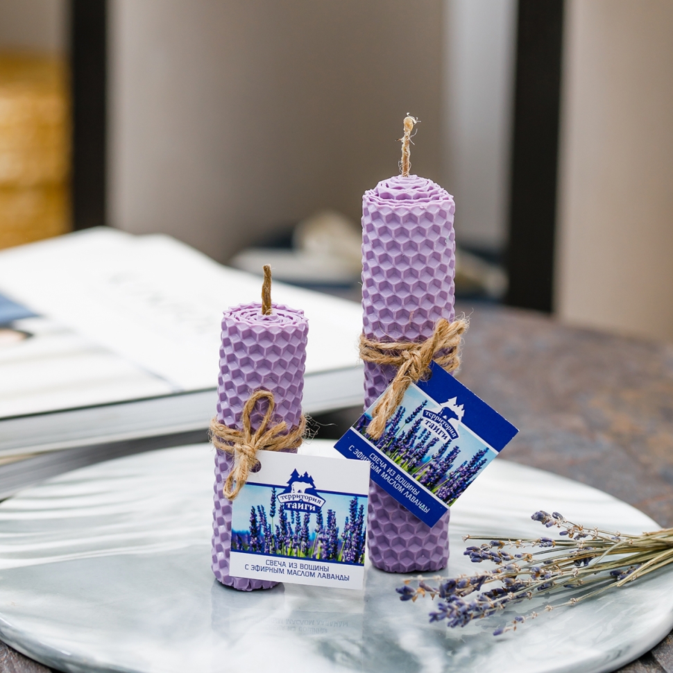 Свеча из вощины с эфирным маслом лаванды, 8,5 см (фиолетовый цвет)