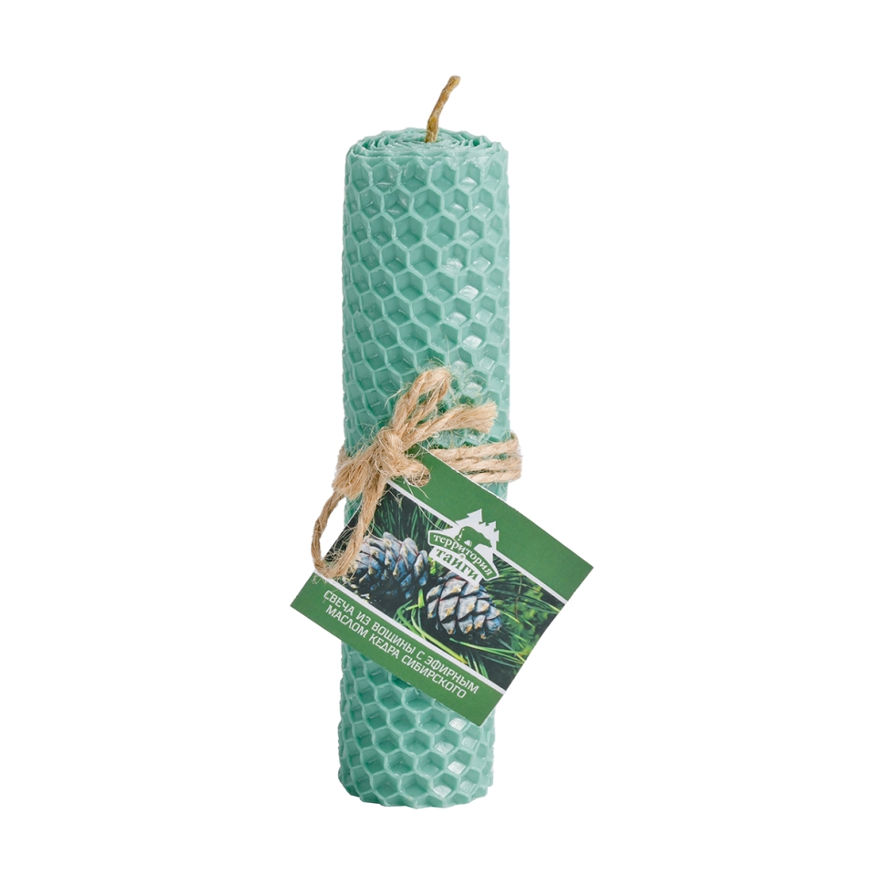 Свеча из вощины с эфирным маслом кедра, 13,5 см (зеленый цвет)