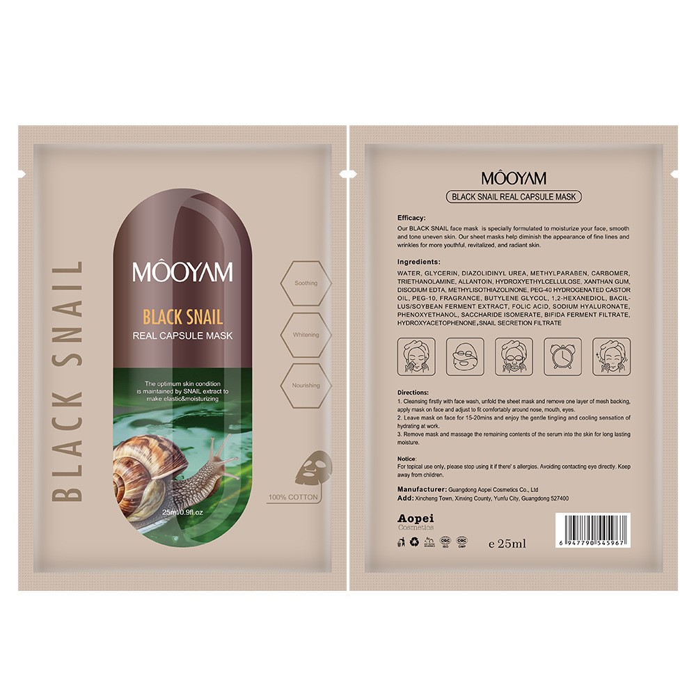 Тканевая маска c муцином черной улитки устраняет отечность, сухость и раздражение, сокращает морщины, улучшает состояние и цвет любого типа кожи.
