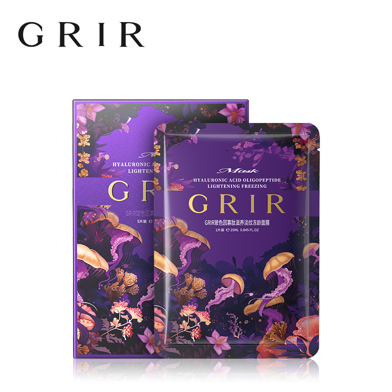 Тканевая маска для лица освежежающая с гиалуроновой кислотой и олигопептидами GRIR Hyalyronic Acid Oligopeptide Lightening Freezing Mask, 5*25мл.