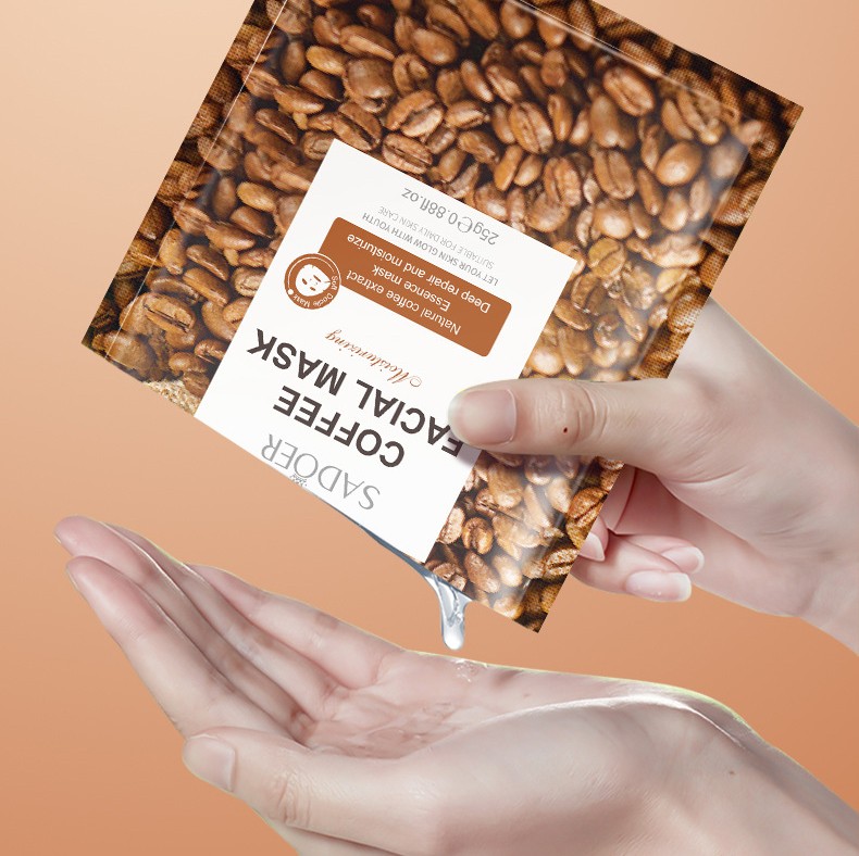Тканевая маска с экстрактом кофе Sadoer прекрасно тонизирует и освежает, мягко осветляет и улучшает общий тон кожи.