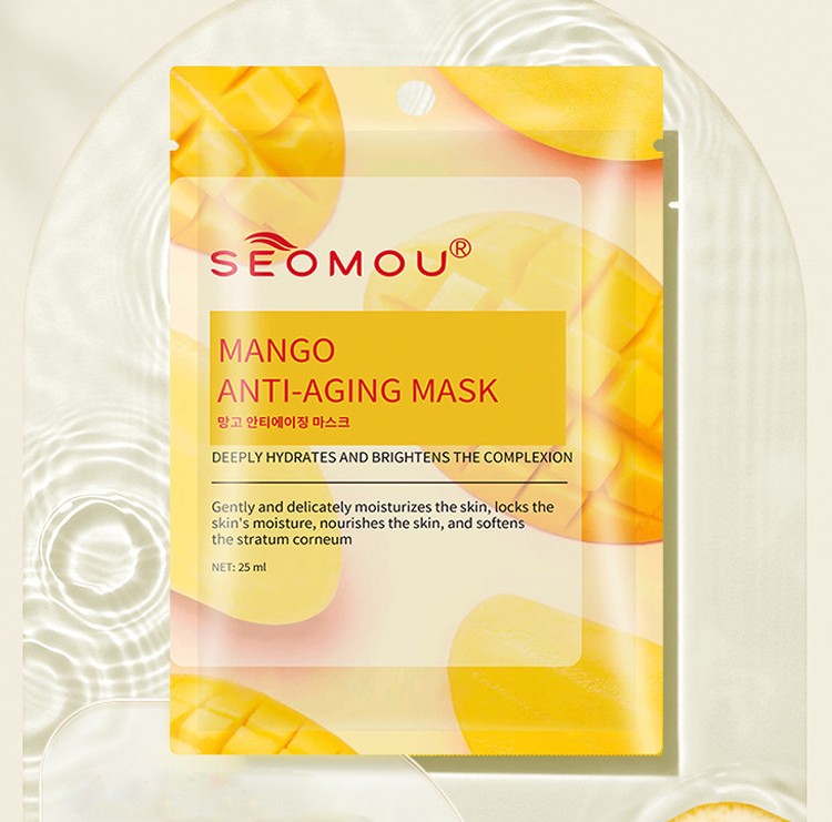 Тканевая маска для лица с экстрактом манго насыщает витаминами и увлажняет кожу.