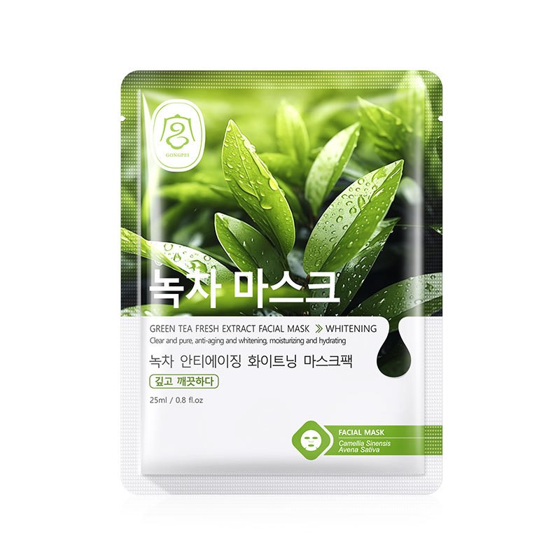 Тканевая маска для лица с экстрактом Зеленого чая, Ромашки и Церамидами Gongpei
