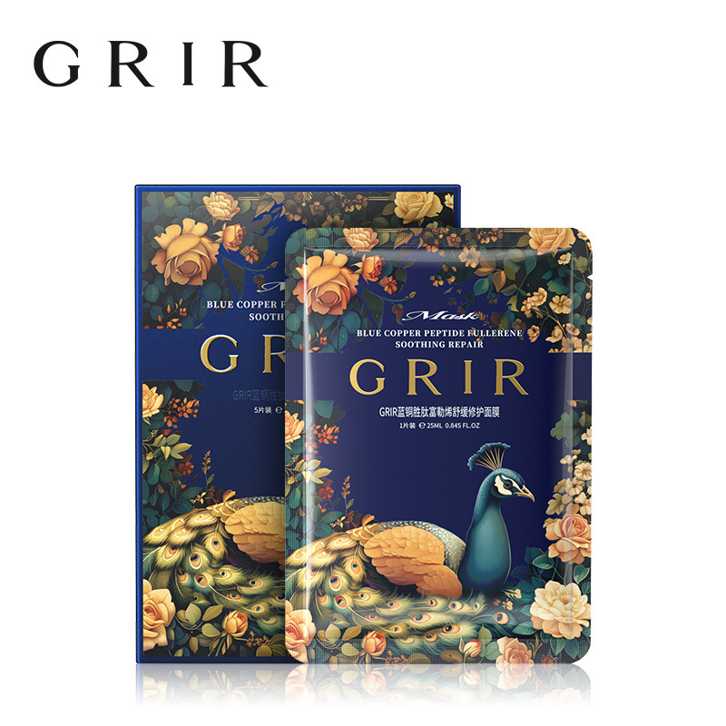 Тканевая маска для лица успокаивающая и восстанавливающая с фуллереном и медными пептидами GRIR Blue Copper Peptide Fullerene Soothing Repair Mask, 5*25мл.