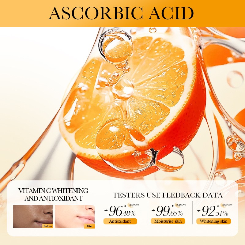 * Витамин C активно взаимодействует с ферментами дермы и вызывает окислительно-восстановительную реакцию, которая приводит к ускорению обмена веществ и регенерации клеток.