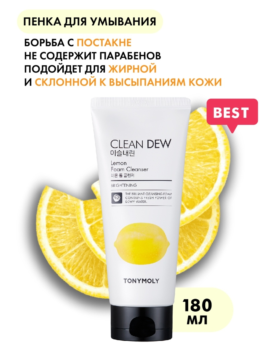 Tony Moly / Корейская пенка для умывания лица с экстрактом лимона Clean Dew Lemon Foam Cleanser, 180 мл.