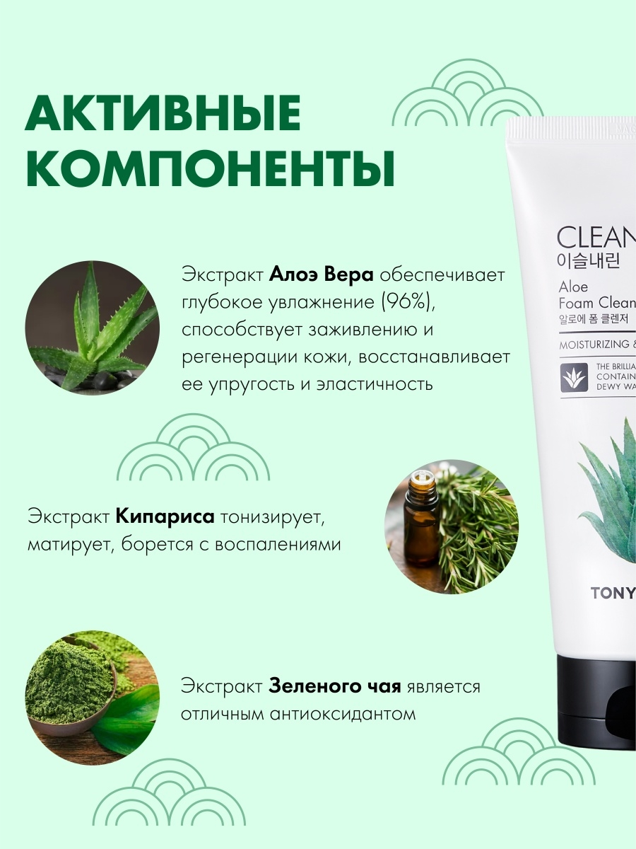 Tony Moly / Очищающая крем пенка для умывания лица с экстрактом алоэ вера Clean Dew Aloe, 180 мл.
