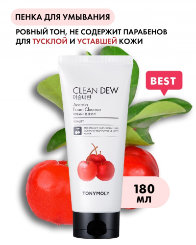 Tony Moly / Очищающая пенка для умывания лица с экстрактом голубики Clean Dew Blueberry Foam, 180 мл.