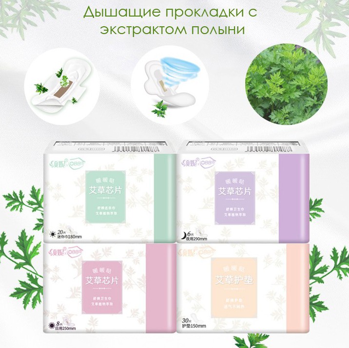 Травяные дышащие прокладки с экстрактом полыни OBB
