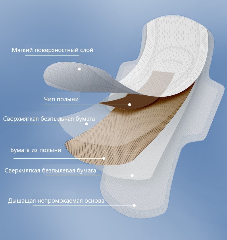 Считается, что экстракты полыни в гигиенических прокладках обеспечивают дополнительные преимущества, такие как регулирование кровотока, уменьшение неприятных запахов и предотвращение роста бактерий.