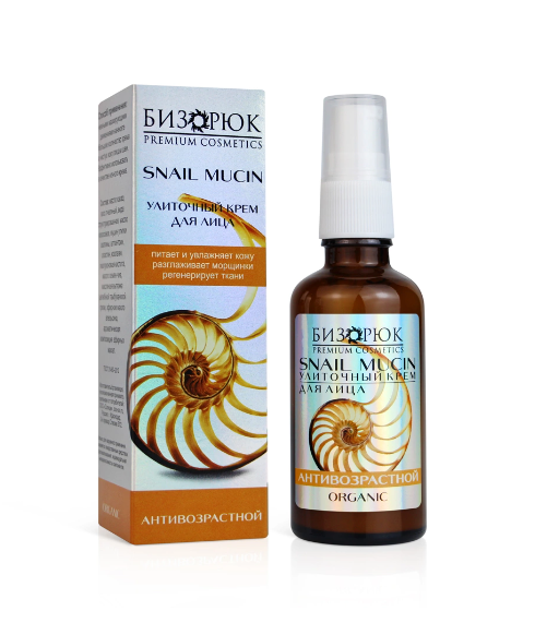 Крем для лица улиточный Антивозрастной, стекло 50 мл, "Бизорюк"