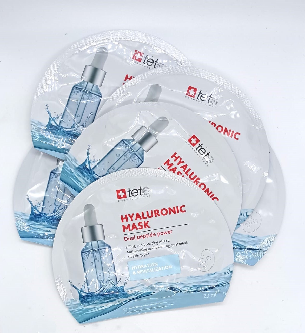HYALURONIC MASK это серия ультраувлажняющих и ревитализирующих масок, которые дают эффект за 20 минут применения. Маска содержит высоко-, средне- и низкомолекулярную гиалуроновые кислоты и обогащена олигопептидами, аминокислотами, высокоочищенными экстракты растений, витаминами, глутатионом и аденозином. Полотно маски выполнено из нежнейшего хлопкового волокна. Применяется как экспресс-программа в салоне или домашнем уходе, после травматичных процедур, уф-повреждения, мезороллера, инъекционных процедур.
