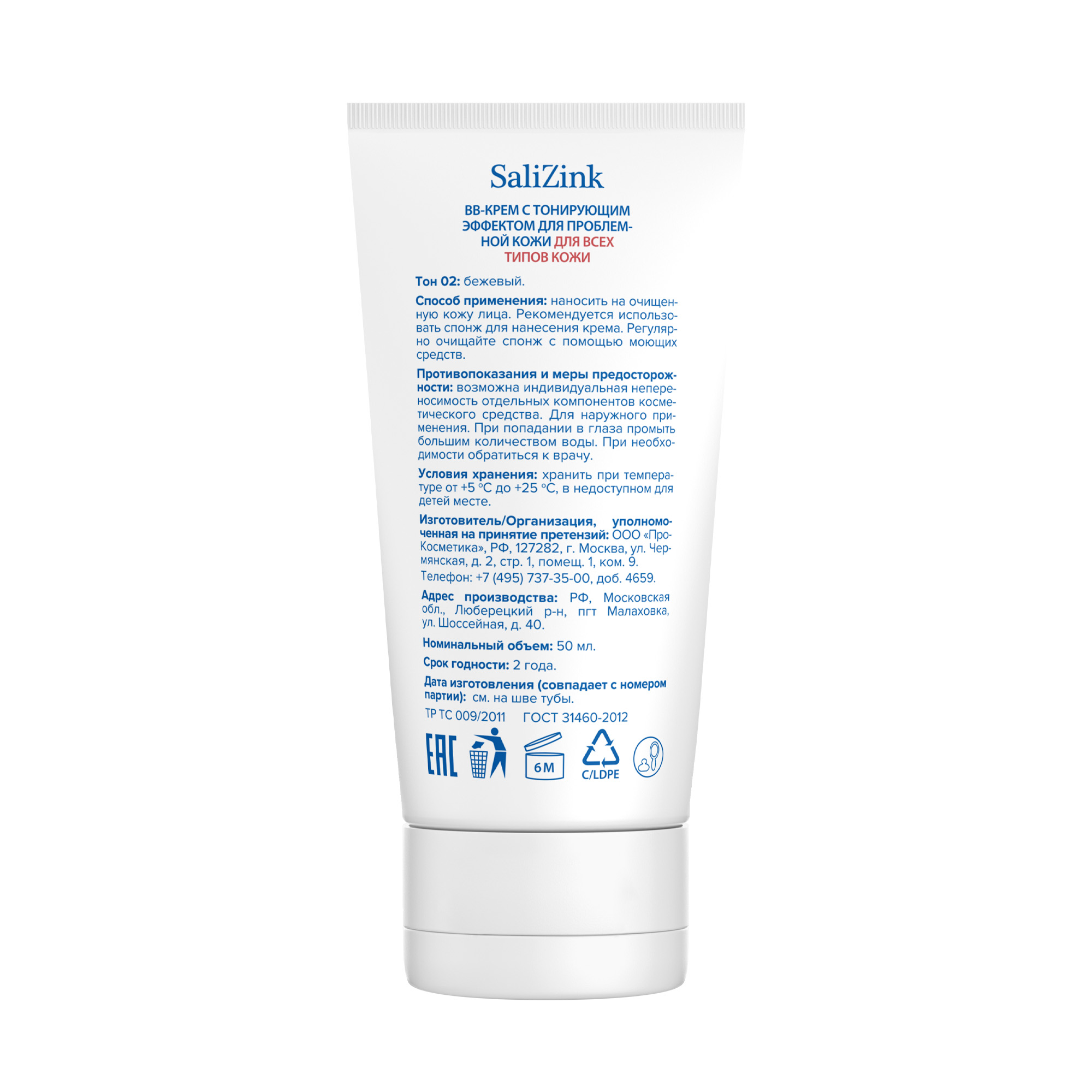 ВВ-крем с тонирующим эффектом для проблемной кожи для всех типов кожи, тон 02 бежевый