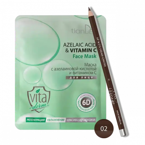 АКЦИЯ 1=2 Купи маску для лица с азелаиновой кислотой и витамином С – В ПОДАРОК карандаш для губ и глаз, тон 02 – Dark Brown!