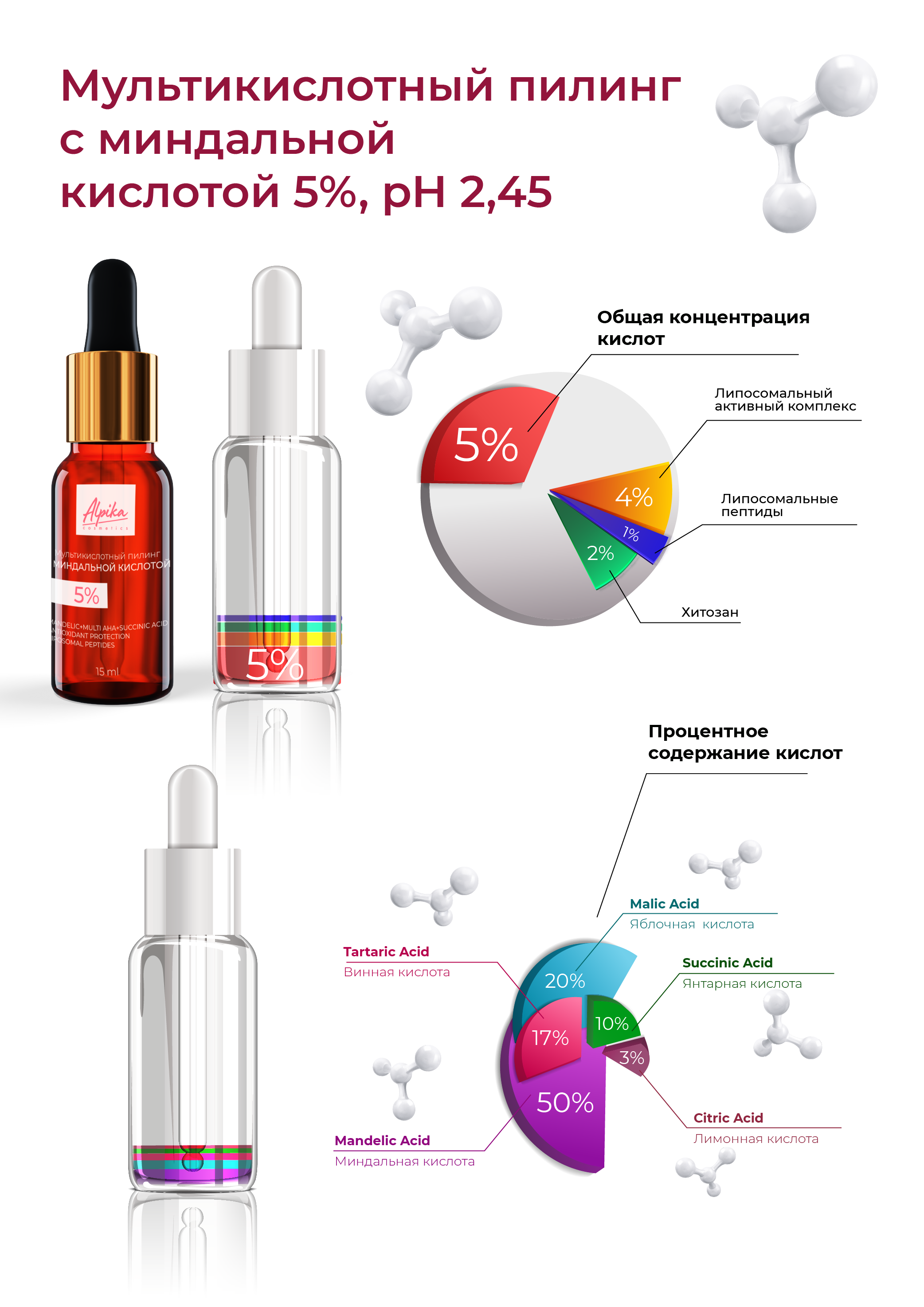 Aqua, Mandelic Acid, Malic Acid, Tartaric Acid, Succinic Acid, Citric Acid, Phloretin, Resveratrol, Chitosan,Lecithin, ExtPine® 300, SpecPed® MCC21