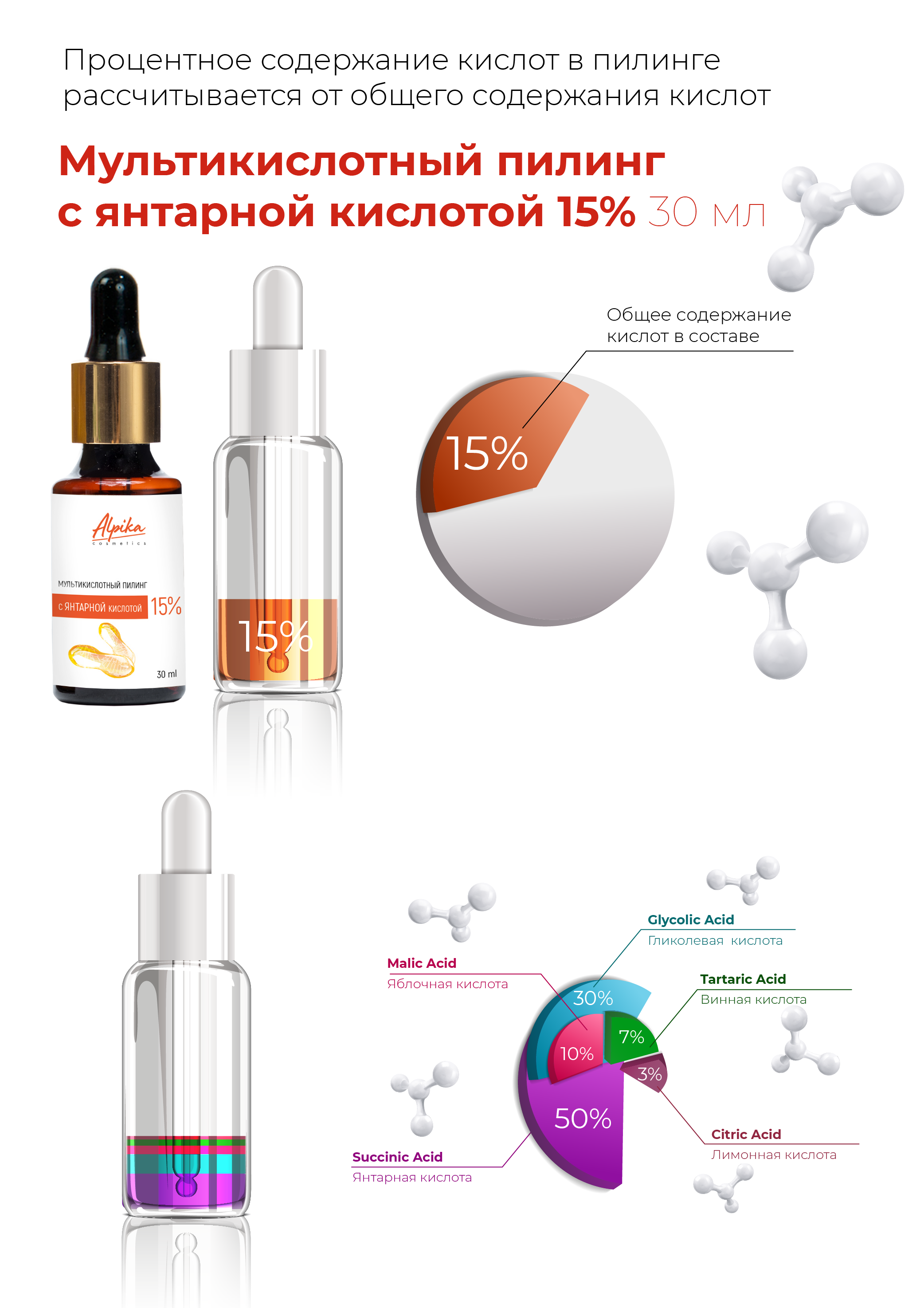 Альпика Мультикислотный пилинг с янтарной кислотой, 15%, 30мл