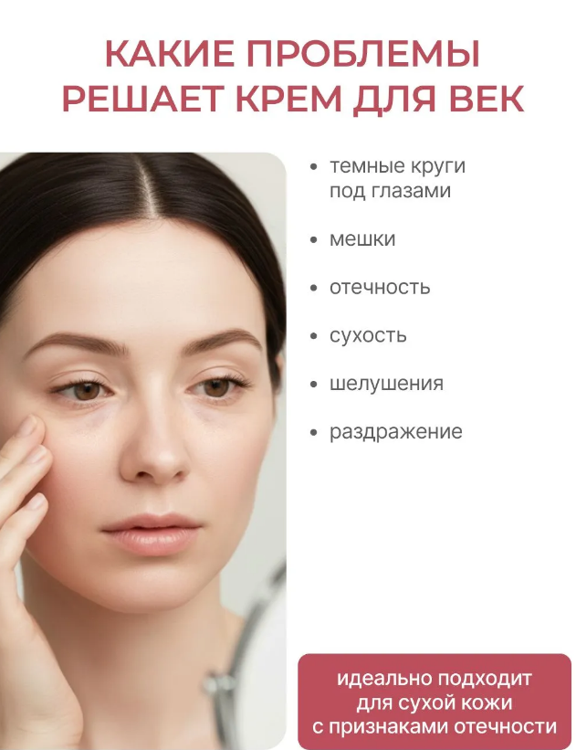 Способ применения: небольшое количество крема нанести на очищенную кожу вокруг глаз утром и вечером.